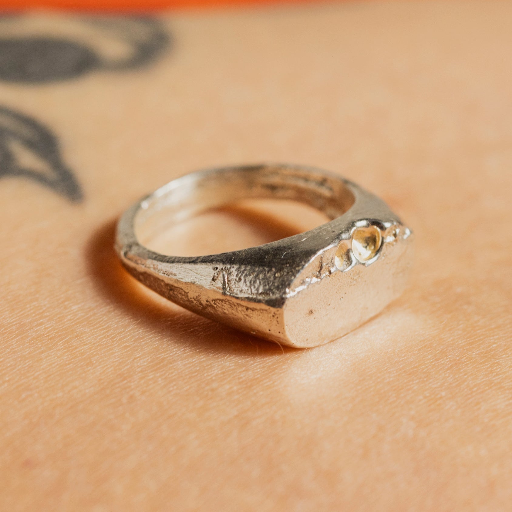 One of a kind sand cast signet ring